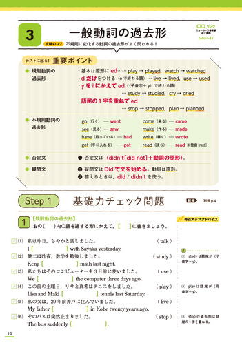 | 1年間の勉強,学校生活に寄り添う,いちばん定番の参考書-中1英語をくわしくわかりやすく解説。授業の予習・復習,定期テスト対策,入試準備まで幅広く対応。勉強に役立つコラムも満載。音声アプリ対応。【英単語ミニブックつき】<新学習指導要領対応> | サイズ:A5変 264ページ | 現金価格(税込)1,760円 | |