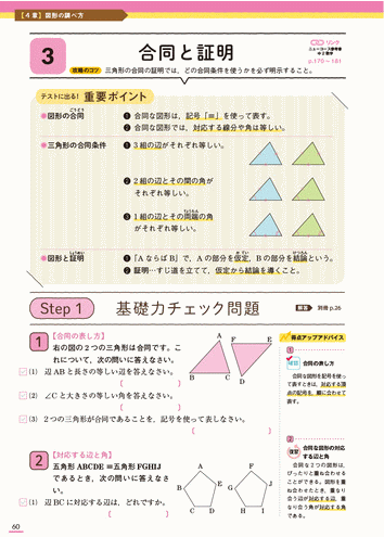 | 授業の復習,定期テスト,入試まで頼れる本格的な問題集-テストによく出る要点のまとめと「基礎力チェック問題」「実力完成問題」の2段階の問題で中2英語が着実に身につく。定期テスト予想問題,別冊解答つき。音声アプリ対応。<新学習指導要領対応> | 授業の復習,定期テスト,入試まで頼れる本格的な問題集-テストによく出る要点のまとめと「基礎力チェック問題」「実力完成問題」の2段階の問題で中2数学が着実に身につく。「定期テスト予想問題」,くわしい別冊解答つき。<新学習指導要領対応> | ||
