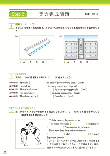 | 授業の復習,定期テスト,入試まで頼れる本格的な問題集-テストによく出る要点のまとめと「基礎力チェック問題」「実力完成問題」の2段階の問題で中2理科が着実に身につく。「定期テスト予想問題」,くわしい別冊解答つき。<新学習指導要領対応> | 授業の復習,定期テスト,入試まで頼れる本格的な問題集-テストによく出る要点のまとめと「基礎力チェック問題」「実力完成問題」の2段階の問題で中3英語が着実に身につく。定期テスト予想問題,別冊解答つき。音声アプリ対応。<新学習指導要領対応> | ||