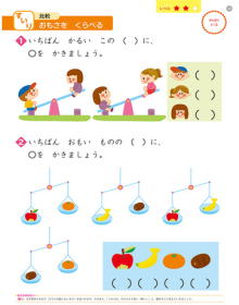 | 空間認知力・思考力・器用さ・日本の常識 5~6歳向け | 数の多少・対称な形・重さの比較 4~6歳向け | ||